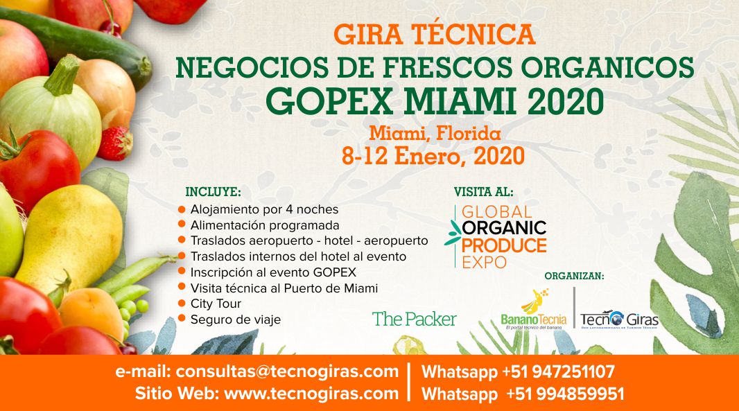 Esta Gira Técnica al GOPEX MIAMI 2020 ofrece a la industria de productos frescos el único encuentro mundial exclusivo para orgánicos. Este foro y feria internacional ofrece la oportunidad de establecer contactos, intercambiar ideas y soluciones y realizar negocios con los principales productores, distribuidores, importadores y compradores mayoristas de la industria de orgánicos.