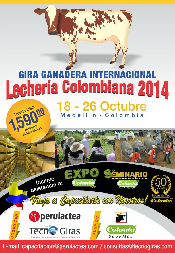 La Gira Ganadera Internacional, “LECHERIA COLOMBIANA 2014”, es un evento que consiste en un viaje a la ciudad de Medellín en Colombia, para participar durante 9 días y 8 noches en actividades de capacitación y actualización en múltiples tópicos tecnológicos que hacen parte del manejo ganadero y el procesamiento agroindustrial de sus derivados. La Gira Técnica está dirigida a personas relacionadas e interesadas en incursionar en la producción y procesamiento de leche y carne, que deseen conocer “in situ” que estrategias se vienen aplicando a nivel internacional para lograr negocios competitivos en el sector pecuario sustentados en la CALIDAD.