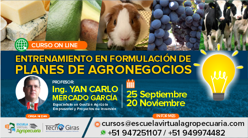 El participante inscrito en este curso tendrá la oportunidad de adquirir conocimientos para estar en capacidad de desarrollar una completa “idea de negocio”, mediante una metodología en la que aprenderá a obtener información del mercado, desarrollar un plan de producción, se ejecute un análisis de la inversión y fuentes de financiamiento, realizar el análisis económico y financiero mediante el VAN y TIR con lo cual podrá evaluar la viabilidad de un proyecto sea del rubro agrícola, ganadero, agroindustrial, forestal, entre otros.