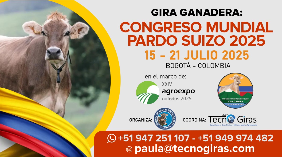 La Asociación Colombiana de Criadores de Ganado Pardo Suizo, Braunvieh y sus cruces, lo invita personalmente a usted y a sus colegas a participar en el “Congreso Mundial Pardo Suizo 2025”, el cual se llevará a cabo del 15 al 20 de julio en Bogotá, Colombia.
