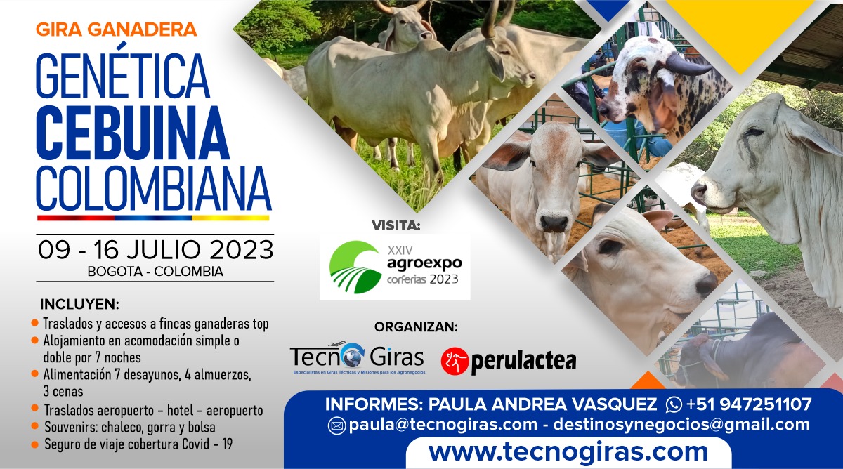Colombia cuenta con cerca de 40 millones de hectáreas dedicadas a la actividad ganadera, de las cuales más de un 60% están ubicadas en altitudes menores a los 1000 metros sobre el nivel del mar y a temperaturas que oscilan entre los 23ºC y los 32ºC. De los más de 26’000.000 cabezas que constituyen el hato nacional, según datos de la Encuesta Nacional Agropecuaria, por lo menos el 95% es cebú o tiene genética cebuina. Tecnogiras y Perulactea te ofrecen la oportunidad de conocer de cerca esta raza, no te pierdas esta oportunidad!