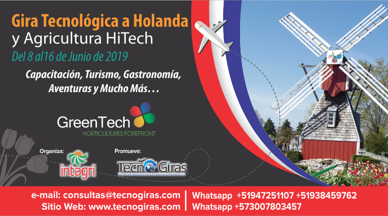 Es una gira especializada para conocer sobre la agricultura Hi-Tech de Holanda. Durante la gira asistiremos a la feria “GreenTech” en Ámsterdam; la cual es una de las ferias más importantes en el sector agrícola, ya que reúne productores y empresas agroindustriales dedicados a la producción de hortalizas, frutales y ornamentales, así como expertos en tecnología e innovación Hi-Tech para la producción agrícola. Tendremos la oportunidad de visitar empresas especializadas en la producción de insectos polinizadores y producción de semilla, control de plagas y enfermedades, que implementan la más alta tecnología en sus sistemas de producción. Realizaremos visitas guiadas por productores de plantas ornamentales los cuales nos compartirán sus conocimientos y estrategias como productores, además de que caminaremos por los coloridos campos de flores en Holanda.